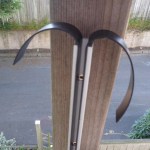 “Parallam” is an engineered structural beam material. Its designed to be very strong and very straight and consistent. I’m using it for my stair treds. I like the look and the fact that its a sustainable material. I like the balance of the machismo of the steel stair structure in combination with the softness of the wood. This wood material reminds me of a bundle of sticks or grass. I think it relates well to my bamboo floor and my bamboo shade that is the “door” to my stacking washer/dryer room.