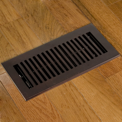 I was looking for registers in a previous post about “Life in the crawl space.” The register is the final frosting on the cake for all that nasty work down below. I found these bronze fixtures at a fairly reasonable price. The bigger they get, of course, the more they cost so I went with a less expensive register for my 12″ x 12″ Floor Return. I have to save money somewhere.
