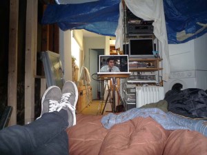 Relaxation watching the office on Netflix surrounded by tarps and the general chaos of construction