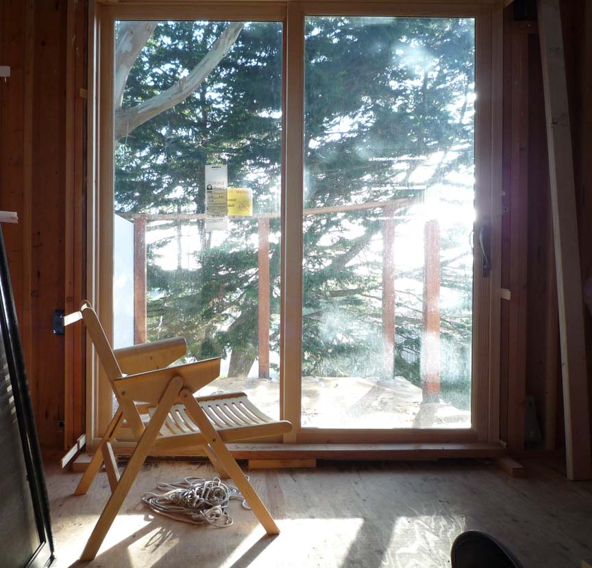 I changed this lower level window from a large picture window to a smaller window that doesn’t interfere with the new stair placement. I matched the existing siding and built a custom redwood trim for the window. I’ve kept the original siding in a lot of the lower level and also repeated the original siding design at one place on the upper level. I want to remember and respect the history of this little house and the use of redwood siding is part of that history.