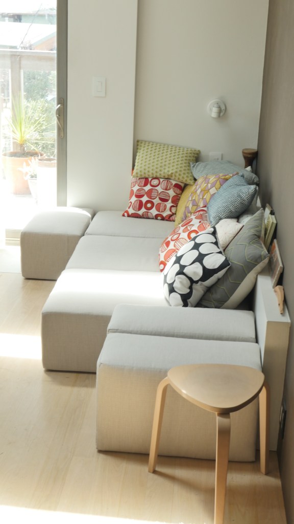 Across from my new modular sofa are piles of my audio media. I know I’ll get a lot of grief for all this but I’m used to that. I happen to love my old media and the devices that go along with them. This is also in a mock-up stage. I’m contemplating a graceful system that allows easy access to all of it.